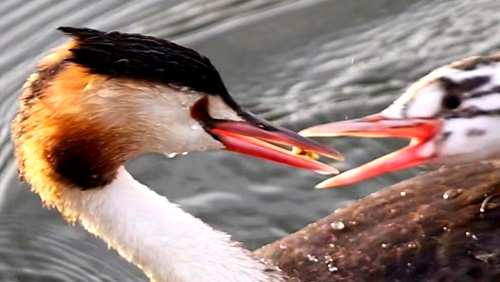 摄影作品《喂食的䴙䴘》